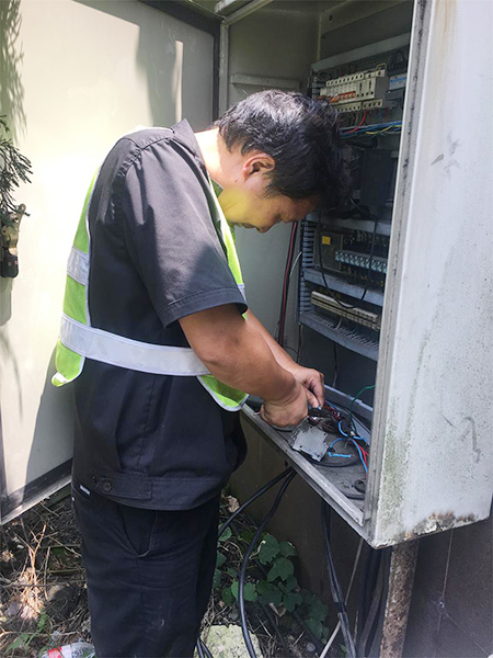 下午1:40,經(jīng)過(guò)通電測(cè)試,9盞路燈全部恢復(fù)正常工作。集團(tuán)總工程師江輝在工程部微信群里肯定了中心工作,并提醒一線人員切記做好防暑降溫工作,注意自身身體狀況。