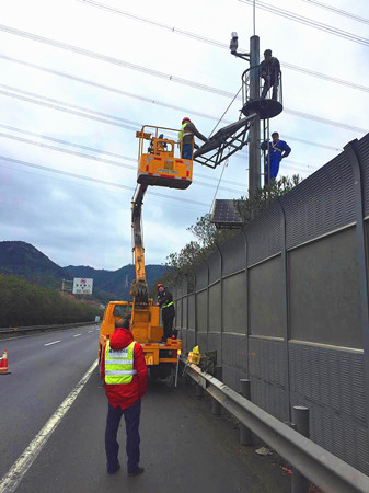 近日,集團(tuán)工程養(yǎng)護(hù)部機(jī)電設(shè)備維養(yǎng)中心組織施工單位,頂著寒風(fēng)冷雨對(duì)沿線有裂痕破損的云臺(tái)太陽能板進(jìn)行了拆除更換,為即將到來的春運(yùn)工作打下堅(jiān)實(shí)的基礎(chǔ)。 集團(tuán)路段共有36個(gè)監(jiān)控云臺(tái),它們?cè)谔岣吒咚俟饭芾砗头?wù)水平上起著重要作用,當(dāng)發(fā)生交通異常時(shí),能及時(shí)確定事故并實(shí)時(shí)發(fā)布相應(yīng)的誘導(dǎo)和救援信息,保障道路暢通,減少財(cái)產(chǎn)損失。維養(yǎng)中心在之前一次摸底排查中發(fā)現(xiàn)沿線有10處云臺(tái)太陽能板由于年久老化,面板晶體出現(xiàn)不同程度開裂破損,嚴(yán)重影響太陽能供電效果,導(dǎo)致監(jiān)控設(shè)備無法有效運(yùn)轉(zhuǎn)。