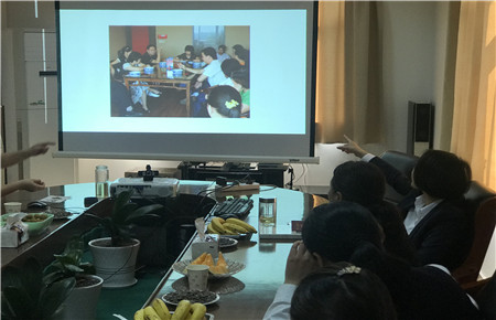 圖為歡送會(huì)上觀看視頻