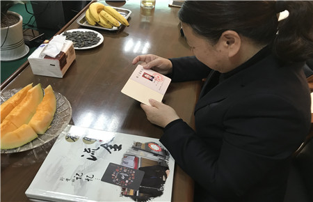 圖為王春玲細(xì)看自己的工作證