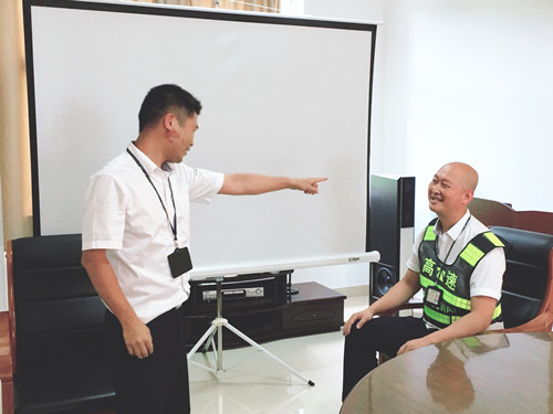 圖為員工扮演駕駛?cè)藛T 此次培訓一改枯燥乏味的傳統(tǒng)形式,工作人員結(jié)合平時窗口實際工作,分別擔任角色扮演,生動而又形象地演繹窗口服務(wù),真實地反映出收費員在收費過程中遇到的各類情景。比如:ETC車道無法正常通過、遇堵車分流、駕駛員情緒激動、綠農(nóng)車混裝未達到免費、入口如何勸離超限車輛等各類突發(fā)事件應(yīng)急處理辦法。