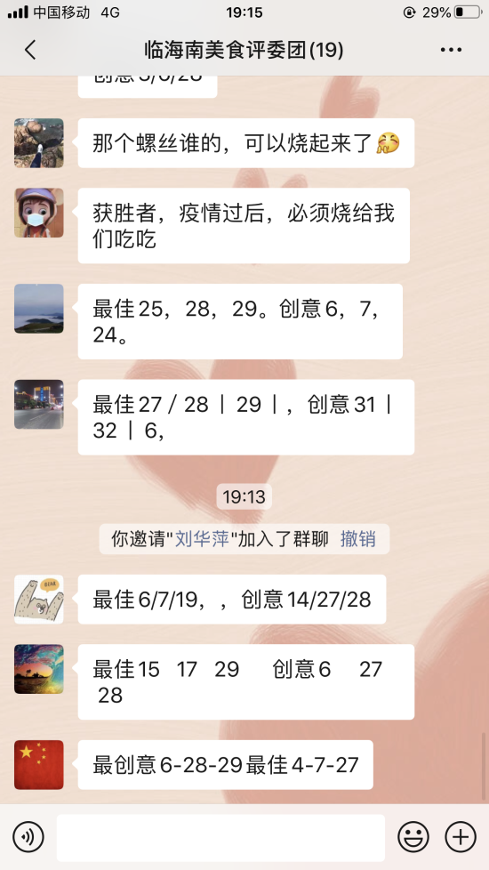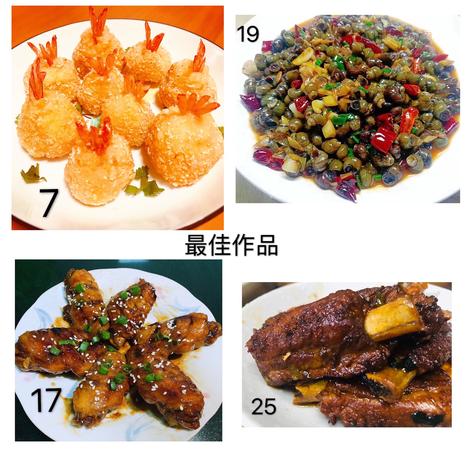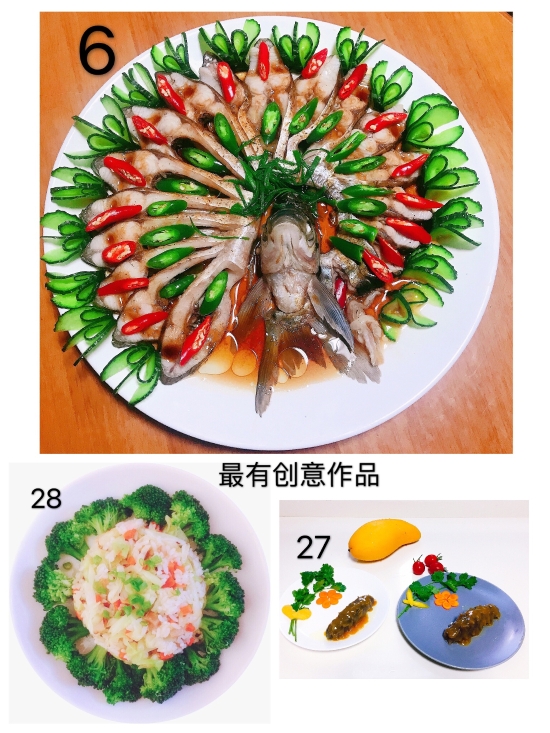 本次活動(dòng)共32幅作品進(jìn)行參評(píng),最終評(píng)選出朱英英的《鳳尾蝦球》、謝海云的《饞嘴螺絲》、李菊麗的《昂翔展翅、陳瑩的《骨色骨香“最佳作品”,朱英英的《孔雀開屏》、葉懿慧的《向陽(yáng)花》、吳琴琴的《秋收》為“最有創(chuàng)意作品”。大家紛紛相約疫情過后,以廚會(huì)友、以食為樂,來一場(chǎng)百家宴一飽口福。