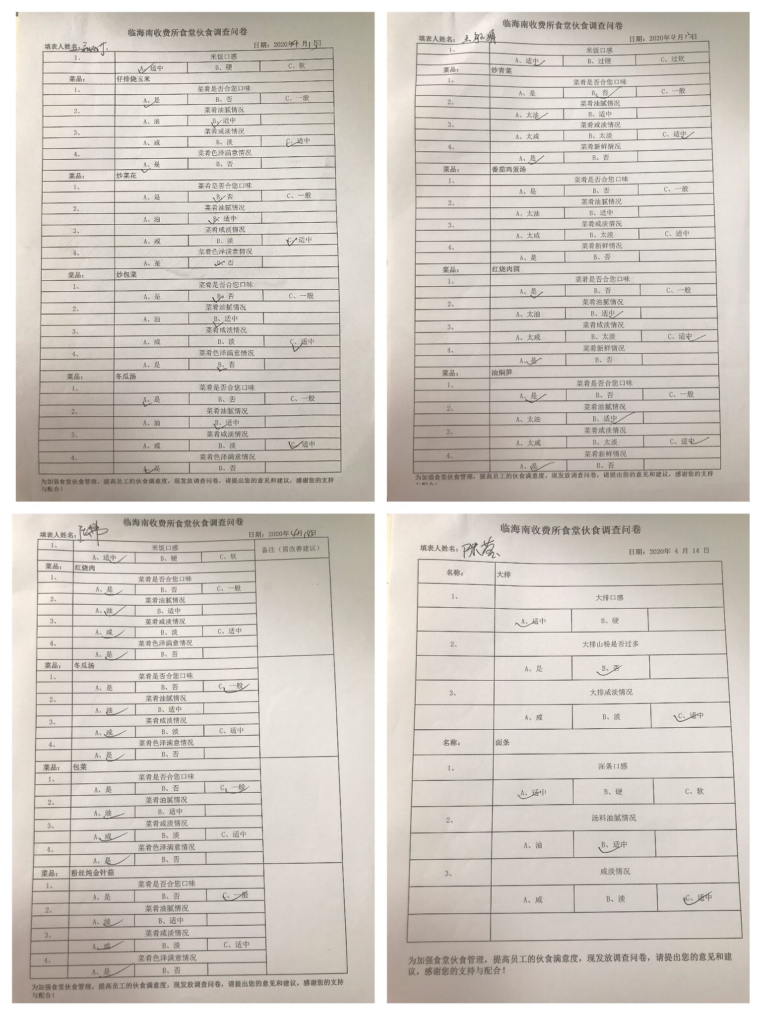 為了提高食堂滿意度,該所菜肴口味、油膩度、咸淡、色澤等方面制定調查問卷,大家真實客觀地表達各自的想法和建議。問卷調查采用當班用餐人員實名填寫問卷調查表的形式進行,通過收集的問卷,每天中午定期召集食堂人員,反饋前一天的調查結果,根據(jù)員工的反饋建議,討論制定整改措施,確保將員工的意見及建議落到實處。除此之外,每逢傳統(tǒng)佳節(jié),定制相應的節(jié)日菜譜,保證員工在站所也能感受到節(jié)日的喜慶和家的溫馨。