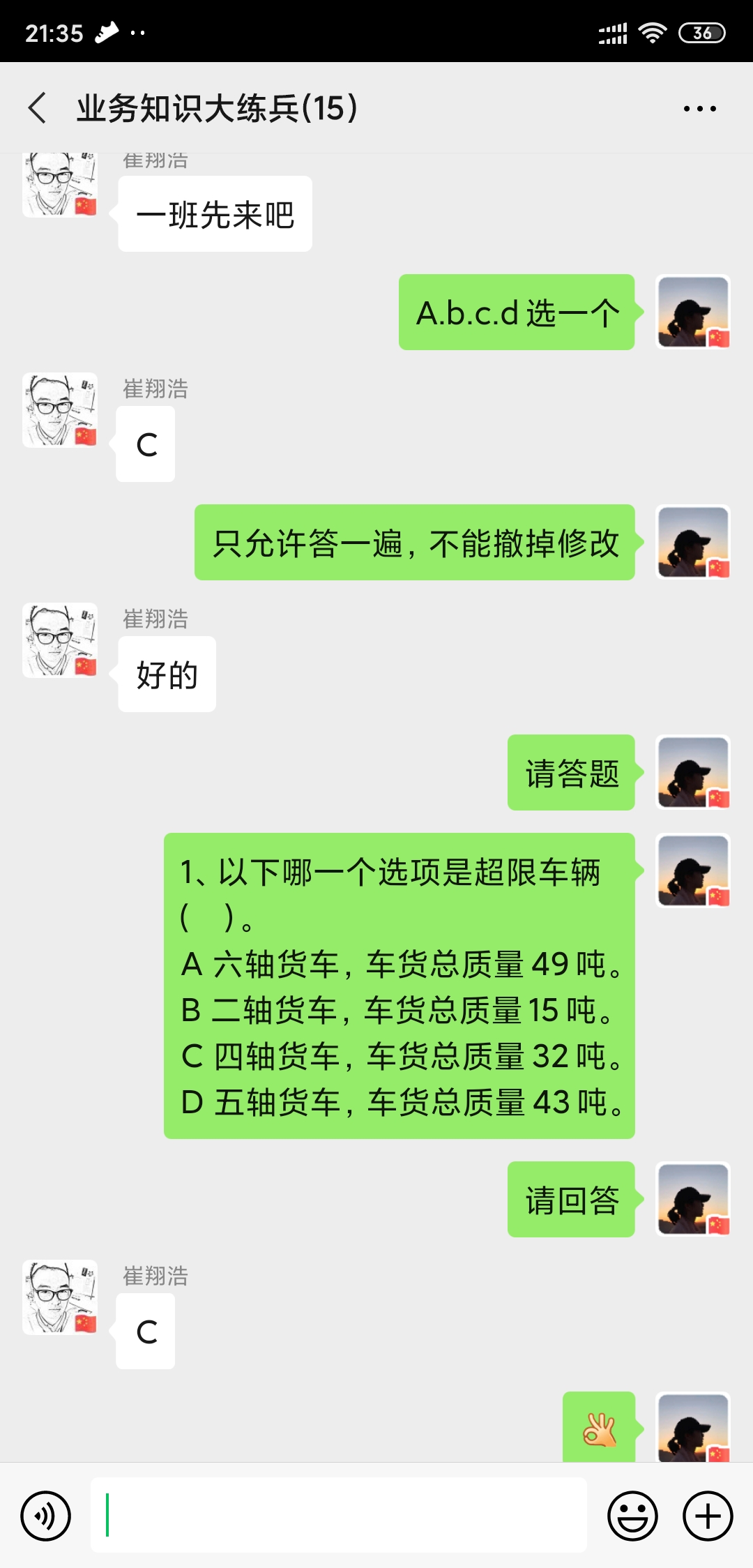 本次業(yè)務(wù)知識大練兵活動根據(jù)取消省界收費(fèi)站后收費(fèi)政策及最新ETC綠農(nóng)車等業(yè)務(wù)內(nèi)容,包括必答題和搶答題,每班同等數(shù)量必答題,只允許單次有效答案;搶答題按回答正確順序取最快一名,計(jì)入個(gè)人分?jǐn)?shù)及班組總分,最后計(jì)分多者為勝。