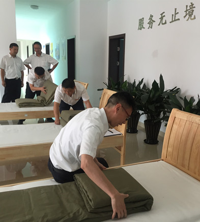 圖為疊被子比賽現(xiàn)場