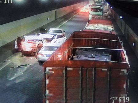 12月22日下午3:00,黃土嶺寧向隧道出口外,因兩輛大貨司機(jī)在行駛途中產(chǎn)生摩擦,不顧他人安危在川流不息的高速車道上大打出手,其中一名司機(jī)還在車道上逼停另外一輛大貨車,造成后續(xù)車輛被堵在隧道內(nèi),間接導(dǎo)致四輛轎車追尾。