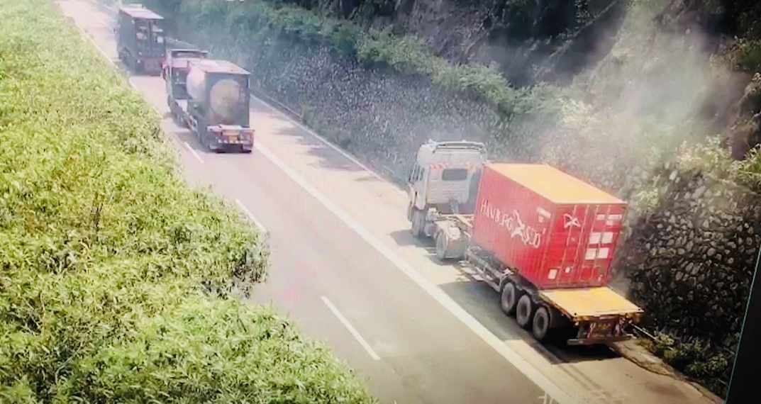 717日,連日的陰雨總算放晴,中控員如常盯著監(jiān)控大屏,1318分,黃土嶺隧道溫向北洞口停車帶一輛紅色半掛車極耀眼,憑多年的崗位經(jīng)驗(yàn),中控員第一時間切換到主畫面,嚴(yán)密監(jiān)視車輛動態(tài)。