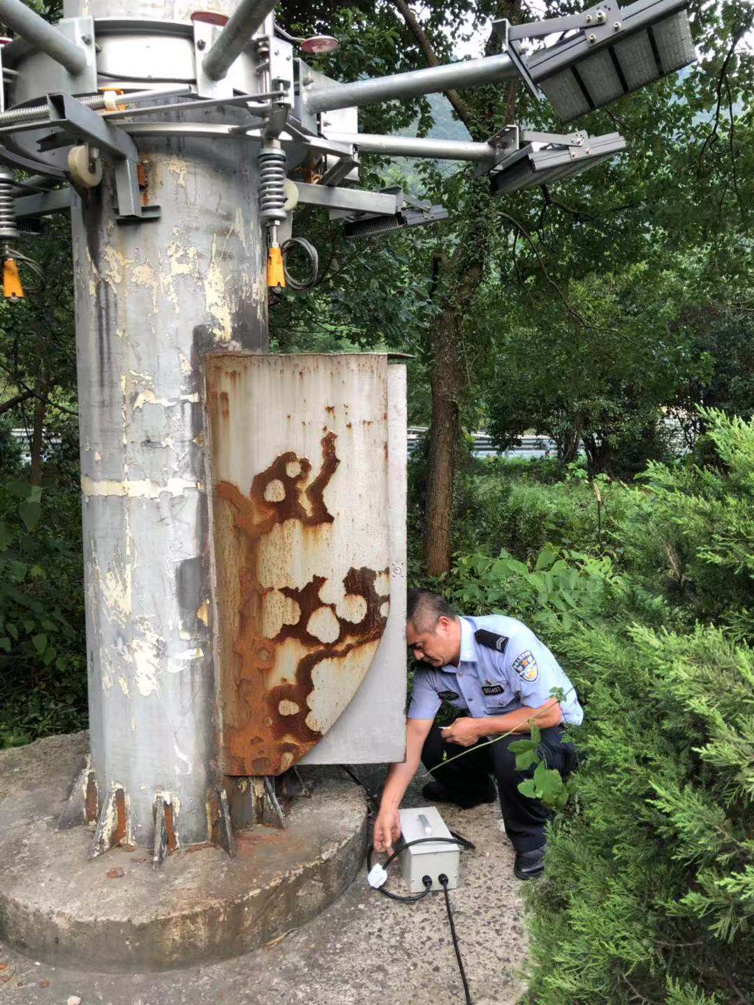 圖為臺(tái)風(fēng)過(guò)后隧道所人員檢查南廣場(chǎng)高桿燈