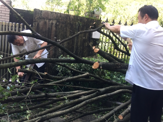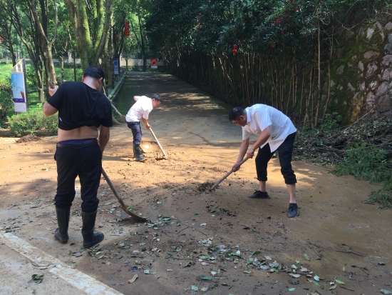 臺(tái)風(fēng)利奇馬”肆虐而過(guò),雖然黃土嶺隧道所提前做好各項(xiàng)防臺(tái)措施,但是干凈整潔的管理所在這場(chǎng)天災(zāi)中還是受到了破壞,樹木倒折、落葉、樹枝滿地淤泥坑洼,現(xiàn)場(chǎng)一片狼藉。8月12日上午剛剛恢復(fù)正常供水的黃土嶺隧道所全體人員立馬投入到重建家園中,打掃衛(wèi)生,原地種回倒伏的樹木,清理淤泥……徹底消除臺(tái)風(fēng)過(guò)后留下的殘敗痕跡。