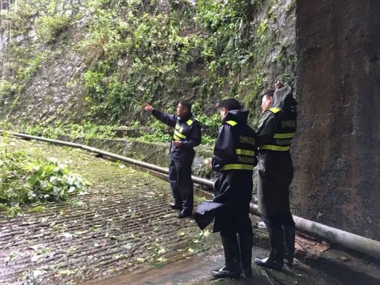 一大早,徹夜未眠的所負(fù)責(zé)人、執(zhí)勤隊(duì)員又開始緊張忙碌:查斜井、邊坡、山體、邊溝部位;檢查南北配電房漏水情況,確保臨時(shí)用電安全;查看所轄路段警示倒塌或受損情況;及時(shí)補(bǔ)充抽水泵等應(yīng)急物資,增加排水設(shè)備,提高排水能力,預(yù)防隧道內(nèi)出現(xiàn)雨水倒灌現(xiàn)象;停電停水的馬宗嶺隧道人員送去糧食和飲用水等物資,做好后勤保障。