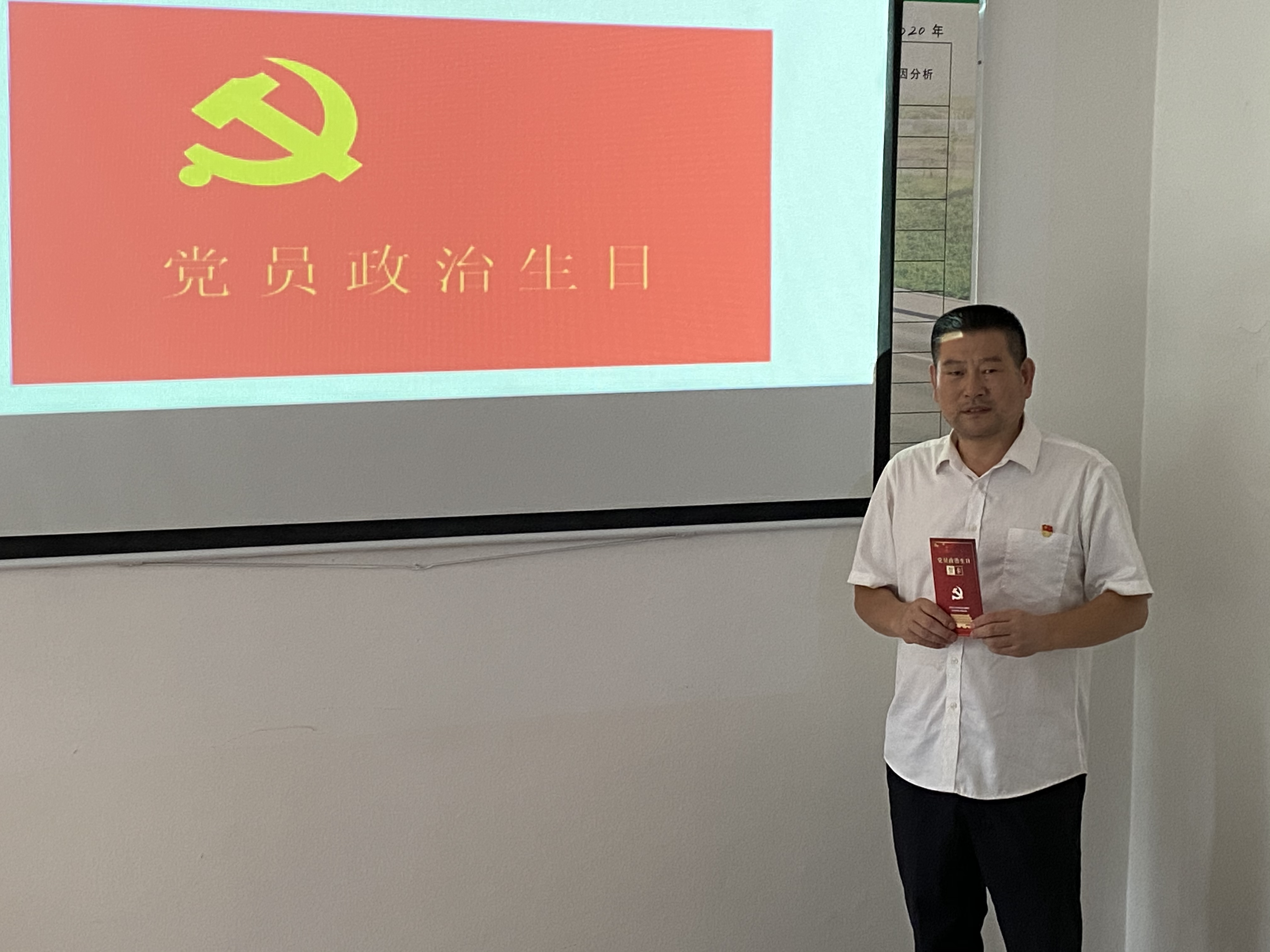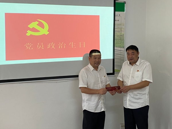 會議現(xiàn)場,黨支部書記李海福向李學來贈送“政治生日”賀卡,并送上“政治生日”祝福,讓李學來感受到來自黨組織的關懷。