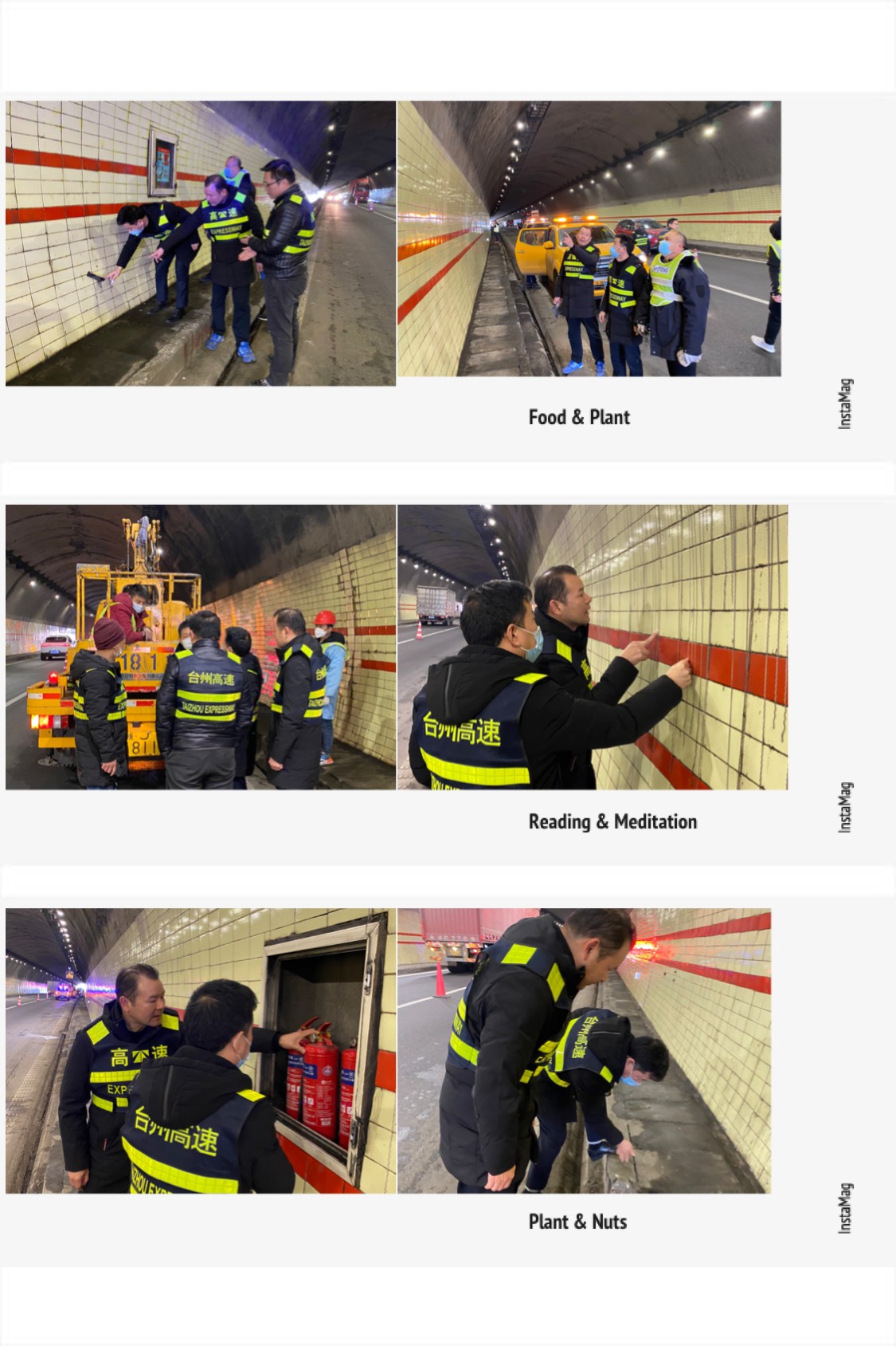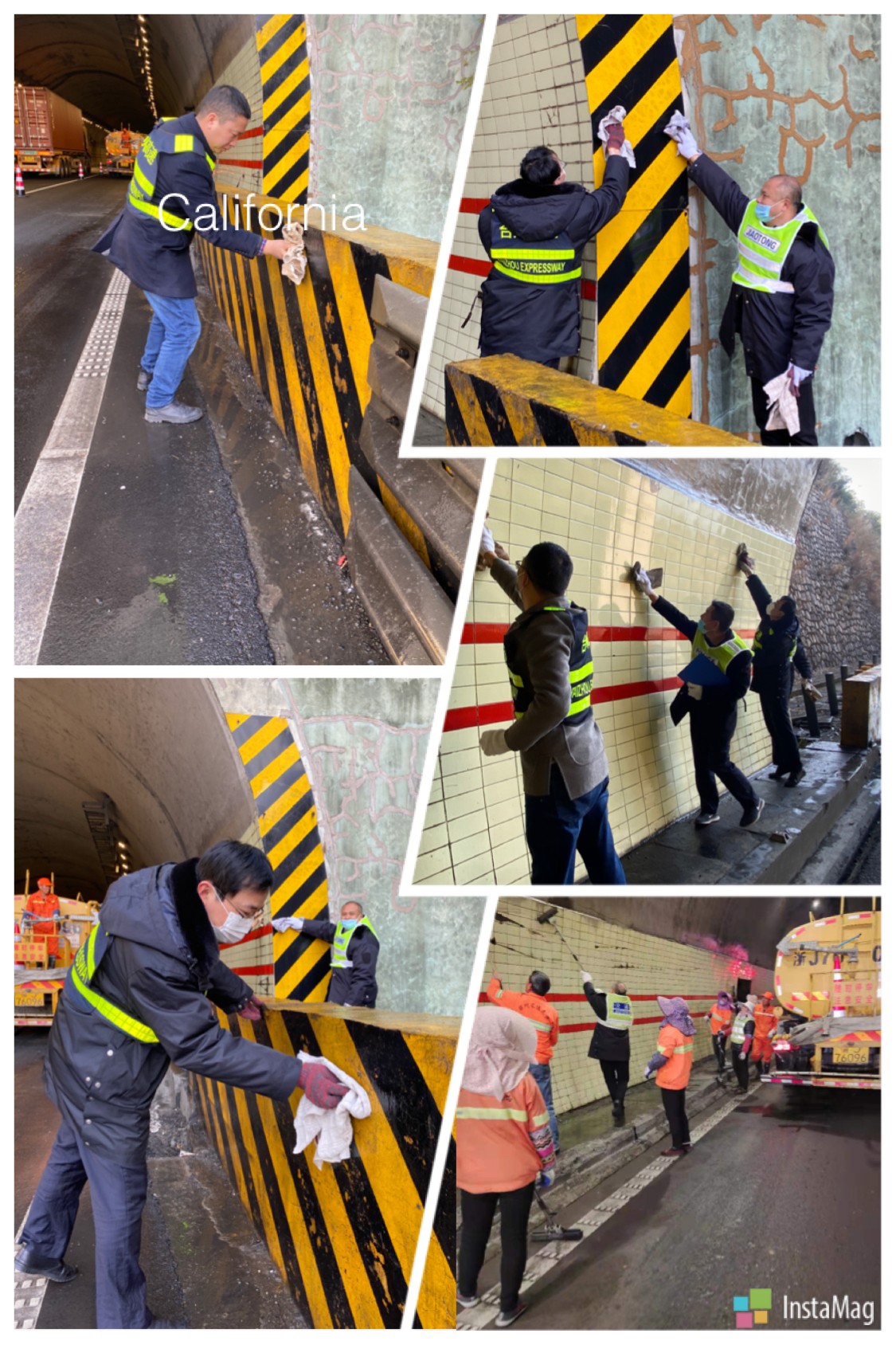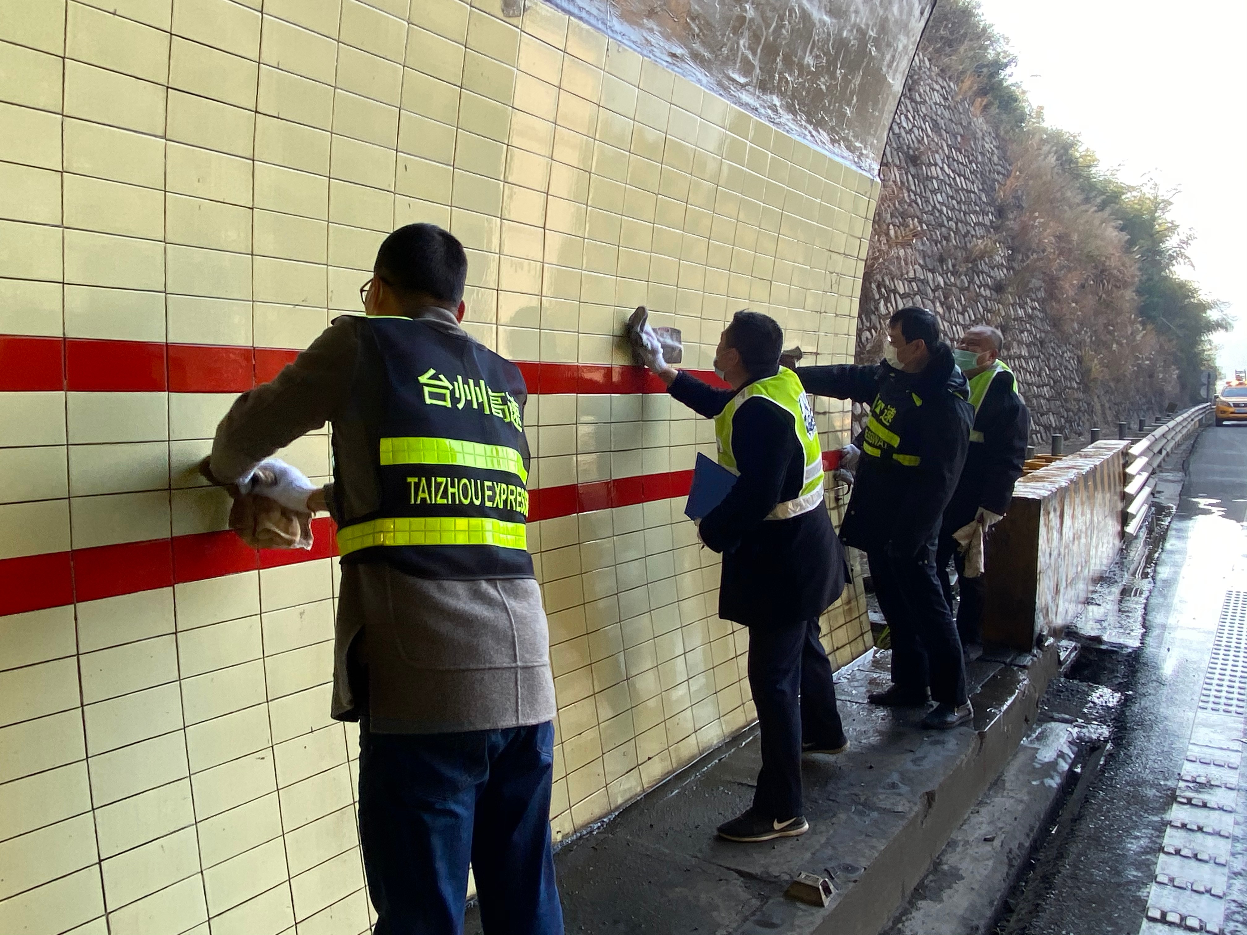 “洞口反光標(biāo)牌再擦擦,這瓷磚用拖把搓一搓!” “隧道經(jīng)擦洗顯得更亮堂了。”