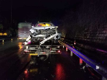 當天18:16分左右,該隧道內還發(fā)生了一起嚴重追尾事故,一輛寶馬X3在進入隧道之前由于車速過快避讓不急,狠狠的與前方一輛大貨車發(fā)生追尾,被撞得慘不忍睹。所幸車上只有駕駛員一人且系了安全帶并未受傷。