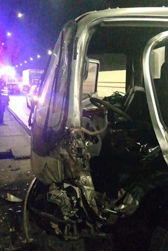 當(dāng)日13:45分,塘嶺溫向隧道發(fā)生一起五車追尾事故,中間三輛車被撞得面目全非,且造成電纜溝蓋破損的路產(chǎn)損失,所幸兩起事故均造成人員傷亡。