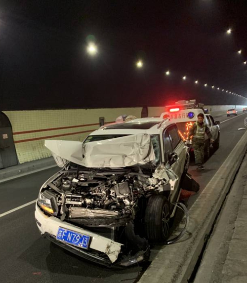 圖為事故現(xiàn)場 在很短的時(shí)間內(nèi),巡邏車就趕到現(xiàn)場。此時(shí)塘嶺隧道事故現(xiàn)場一片混亂,眾多車輛滯留。執(zhí)勤隊(duì)到達(dá)現(xiàn)場做好預(yù)警措施后,執(zhí)勤隊(duì)員勸離兩輛事故車駛往塘嶺隧道南廣場等候交警處理,引導(dǎo)擁堵車輛有序通行。巡邏車尾隨事故車輛,做好預(yù)警工作,緩慢駛向寧向隧道口。然而當(dāng)巡邏車行至寧向出口處,又有兩車發(fā)生追尾,被追尾車輛已是“體無完膚”,現(xiàn)場有大量的拋灑物,嚴(yán)重影響其他車輛通行,需拖車和清障車的救援,清障施救車輛也及時(shí)趕到,現(xiàn)場才恢復(fù)正常通車,此時(shí)距離第一起事故發(fā)生僅僅過去半個(gè)小時(shí)。 在此,臺州高速集團(tuán)溫馨提醒,雖然大家歸家心切,但是春運(yùn)期間高速車流量大,車速快,行車過程中盡量保持安全車距,避免人員傷亡和財(cái)產(chǎn)損失。 陳旦平