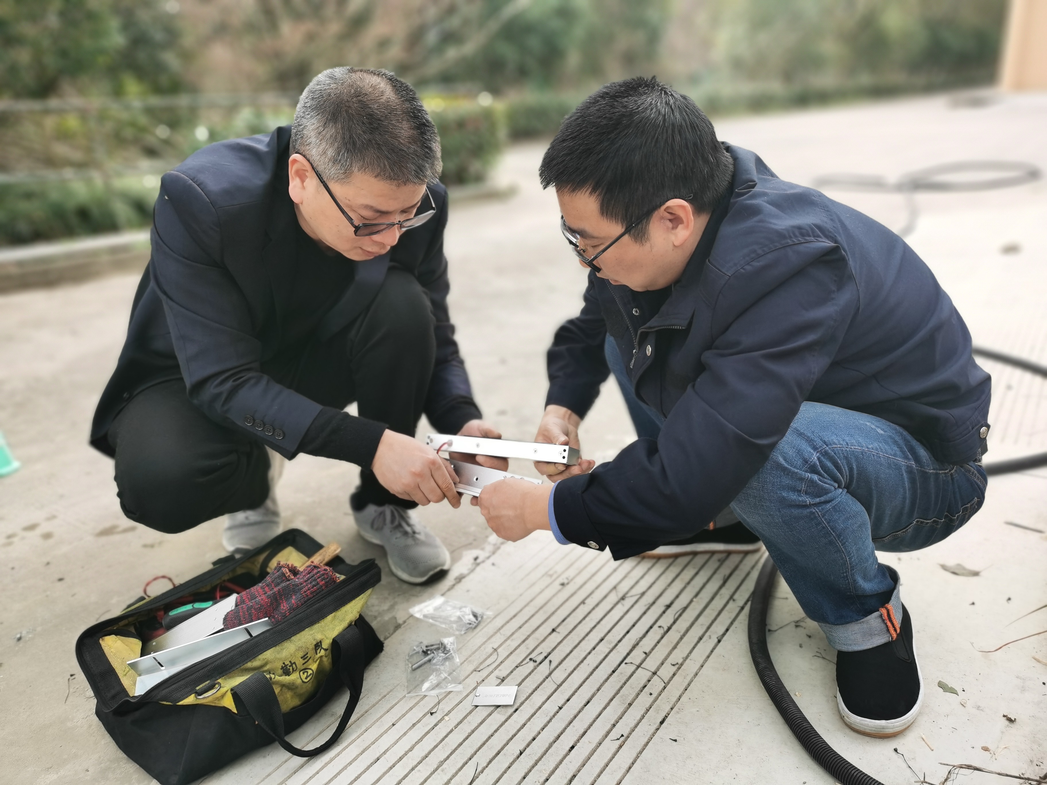 (圖為金衛(wèi)軍與隊(duì)員動(dòng)手安裝)