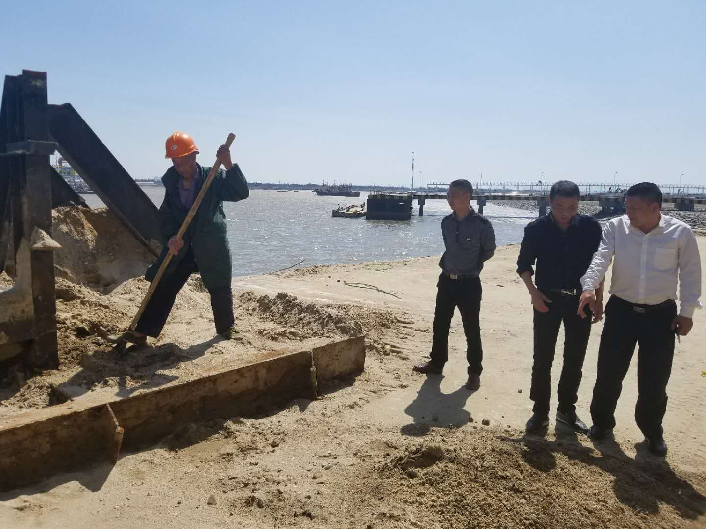 圖為員工詢(xún)問(wèn)工人海沙用途