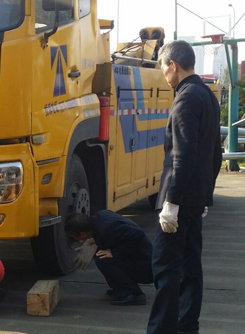 圖為施救現(xiàn)場 為了應(yīng)對隨時可能出現(xiàn)的救援情況,中心領(lǐng)導(dǎo)發(fā)動人員兵分三路,火速進行離合器片的更換修理。機動人員聯(lián)系附近的4 S店,講明情況,可是沒有該種型號的離合器片,值班人員又火速趕往青嶺服務(wù)站去取新的備用離合器片。當(dāng)班駕駛員馬上聯(lián)系了院橋駐點當(dāng)班人員,必要時進行聯(lián)動配合。 當(dāng)晚十點半左右,離合器片終于更換完畢,當(dāng)班人員立即進行性能測試,這輛使用頻率超高的救援車又奔跑在緊張的救援路上。 王凱