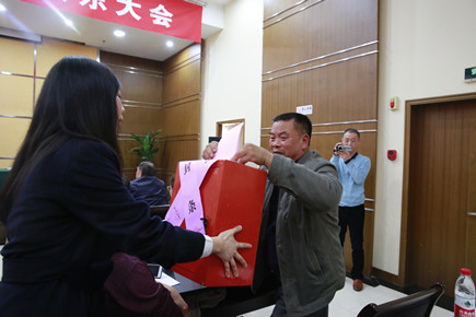 圖為總監(jiān)票人項義超在宣讀投票表決結果