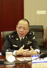 圖為高速交警支隊(duì)支隊(duì)長(zhǎng)陳國(guó)民在會(huì)上講話