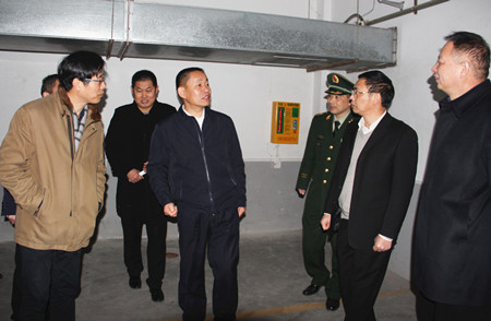 圖為副市長(zhǎng)、公安局長(zhǎng)伍建利一行在消控室檢查
