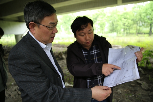 細(xì)雨中,陳文波一行踏勘走訪了院橋大拉溝104國道跨高速公路主線施工現(xiàn)場、庫灘橋14國道橋洞、院橋互通1號橋等地,了解在實際工作中存在的一些難點(diǎn)問題和存在的安全隱患。