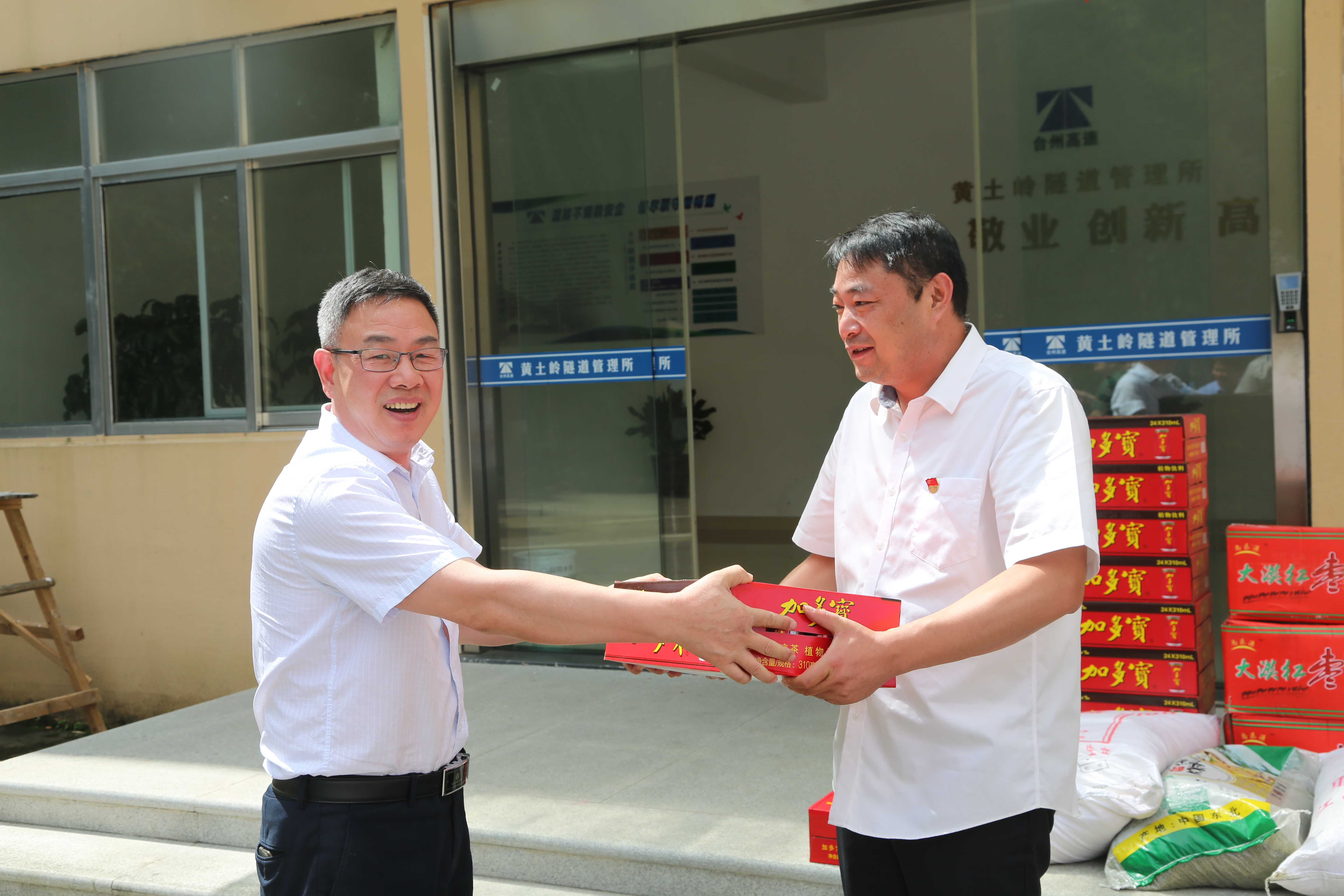 “這么熱的天氣,大家都辛苦啦!感謝你們的辛苦付出,高溫工作,一定要注意避免中暑?!奔瘓F副總經(jīng)理陳保衛(wèi)、羅小將、工會主席項義超、征費部負責(zé)人等相關(guān)人員,到房產(chǎn)公司、大溪嶺隧道所、溫嶺西、臺州南等收費所,為一線員工送上消暑物資,慰問堅守在酷暑下的工作人員。