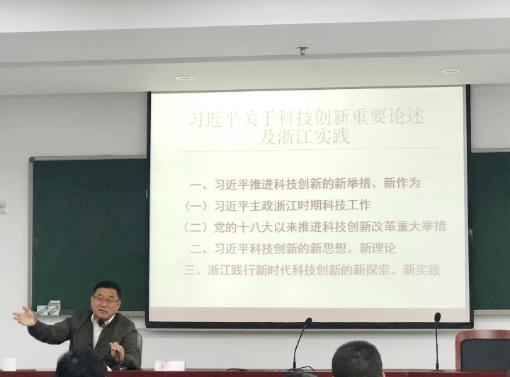 圖為浙江省科技廳教育培訓中心副主任戴銀燕以《習近平科技創(chuàng)新及浙江實踐》為題授課