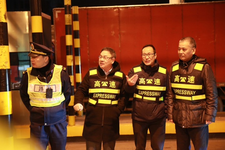 為確保取消省界收費站工作平穩(wěn)過渡,12月31日,臺州市副市長林先華、市交通局局長陸善福、市公路局局長馬德勝,以及當?shù)卣块T領(lǐng)導紛紛來到集團一線收費站,協(xié)力助推取消高速公路省界收費站工作順利開展。