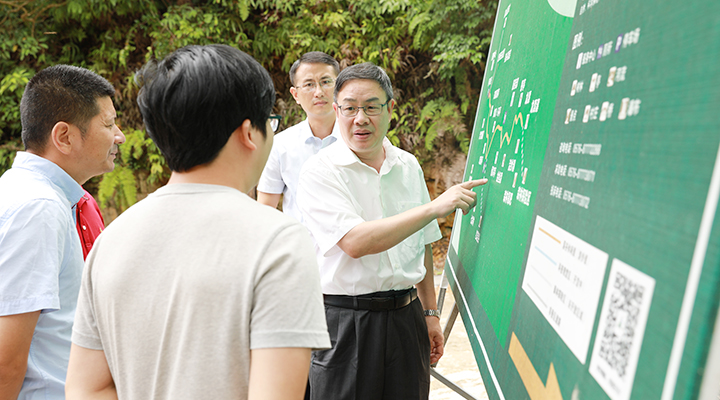 圖為陳文波一行在淡竹景區(qū)山頂考察