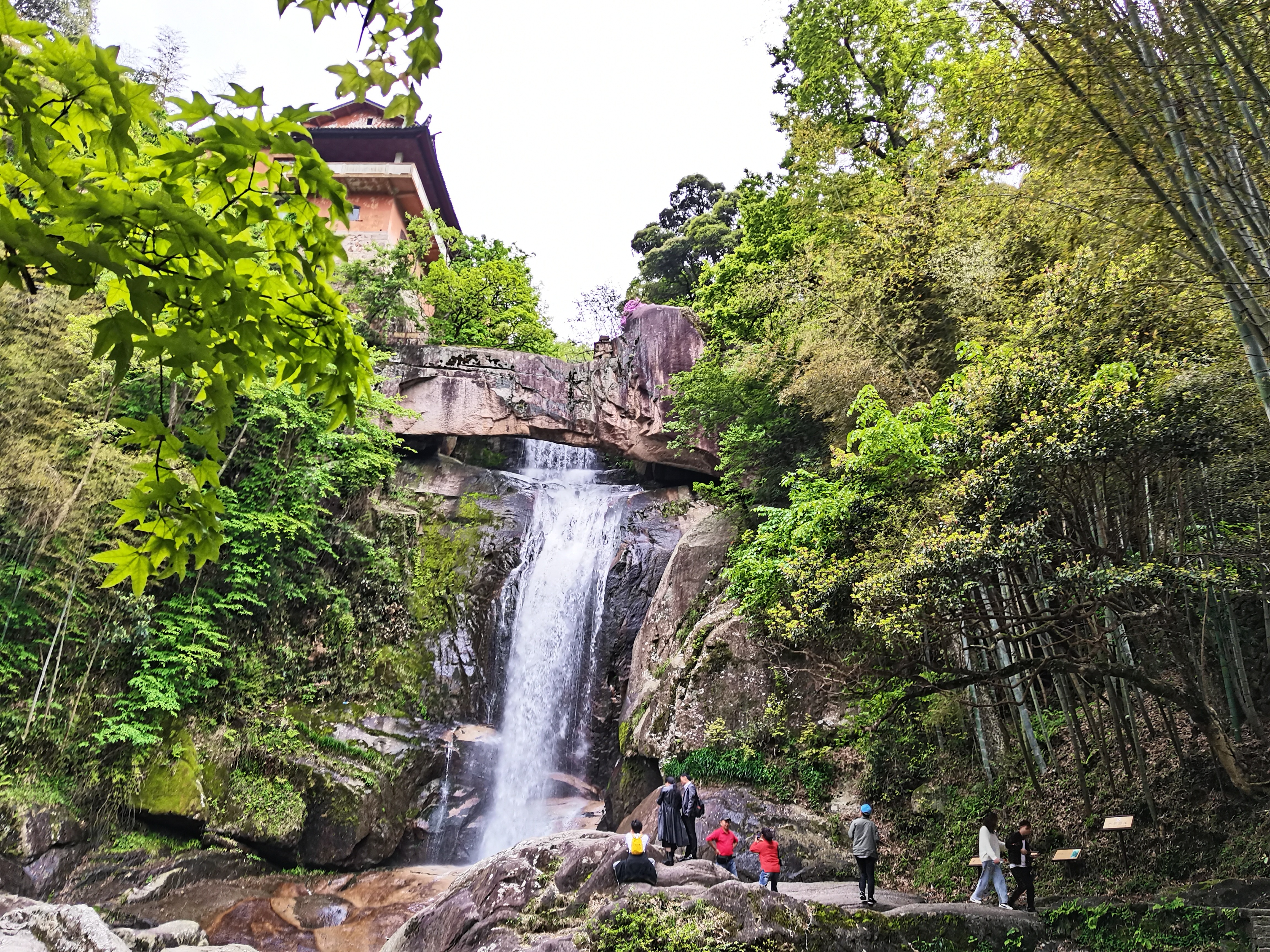 石梁景區(qū)內(nèi),清澈見底的湖水、漫山遍野的樹木,大家伴著聲聲鳥鳴,欣賞了令無數(shù)文人墨客嘆為觀止的優(yōu)美景色。其中最讓人拍手叫絕的,要數(shù)著名的“石梁飛瀑”了,越是靠近瀑布,激起的水花在微風(fēng)的吹拂下帶來陣陣涼意,抬頭觀瀑,真有“飛流直下三千尺,疑是銀河落九天”的壯闊之感。 一天的時間在歡聲笑語中飛快地流逝,員工們在與大自然的親近中,擁抱了春天,放松了心情,鍛煉了身體,同時,旅途中大家互幫互助、談笑嬉戲,大大增進(jìn)了彼此的情感和默契。 【國清寺概況】國清寺位于浙江省臺州市天臺縣城關(guān)鎮(zhèn),始建于隋開皇十八年(598年),初名天臺寺,后取“寺若成,國即清”,改名為國清寺。寺廟占地面積7.3萬平方米。國清寺現(xiàn)存建筑為清雍正十二年(1734年)奉敕重修。2006年,國清寺被國務(wù)院批準(zhǔn)為第五批全國重點(diǎn)文物保護(hù)單位。 【石梁景區(qū)概況】石梁景區(qū)位于浙江省臺州市天臺縣石梁鎮(zhèn)內(nèi),是天臺山風(fēng)景名勝區(qū)的精華所在。這里有世界上罕見的瀑布和天生橋巧妙結(jié)合的石梁飛瀑,有舉世聞名的佛教五百羅漢道場“方廣寺”,有法華晨光、龍游澗等多個主要景點(diǎn)……千古石梁,天下奇觀,瀑以梁奇,梁以瀑險,山、石、水奇妙結(jié)合,歷來被譽(yù)為天臺山風(fēng)景之“眉目”。 項淑珍