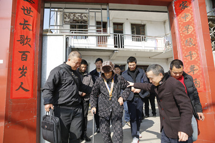 當(dāng)來到百歲抗戰(zhàn)老兵的家中時,張建平立即上前緊緊握住老人家的雙手,在親切的慰問中遞上紅包,送上春節(jié)的祝福,并詢問老人家的生活情況和身體狀況。