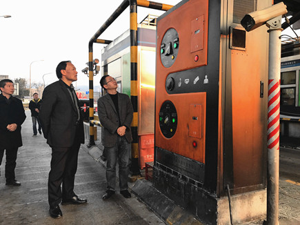 圖為公司副總經(jīng)理董阿林正在實(shí)地考察自動發(fā)卡機(jī)運(yùn)行情況