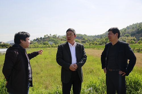 圖為公司領導陳文波在水花村考察停車區(qū)地塊