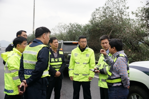集團(tuán)聯(lián)合高速交警、路政檢查第一階段斷流施工情況 11月7日上午,集團(tuán)聯(lián)合高速交警、高速路政等單位實(shí)地踏勘了集團(tuán)沿線斷流施工現(xiàn)場(chǎng),檢查第一階段施工進(jìn)展情況及現(xiàn)場(chǎng)交通管控點(diǎn)、收費(fèi)站分流點(diǎn)交通流等情況,集團(tuán)總工程師江輝、高速交警臺(tái)州支隊(duì)副支隊(duì)長(zhǎng)沈汝寬、高速路政領(lǐng)導(dǎo)參加檢查。