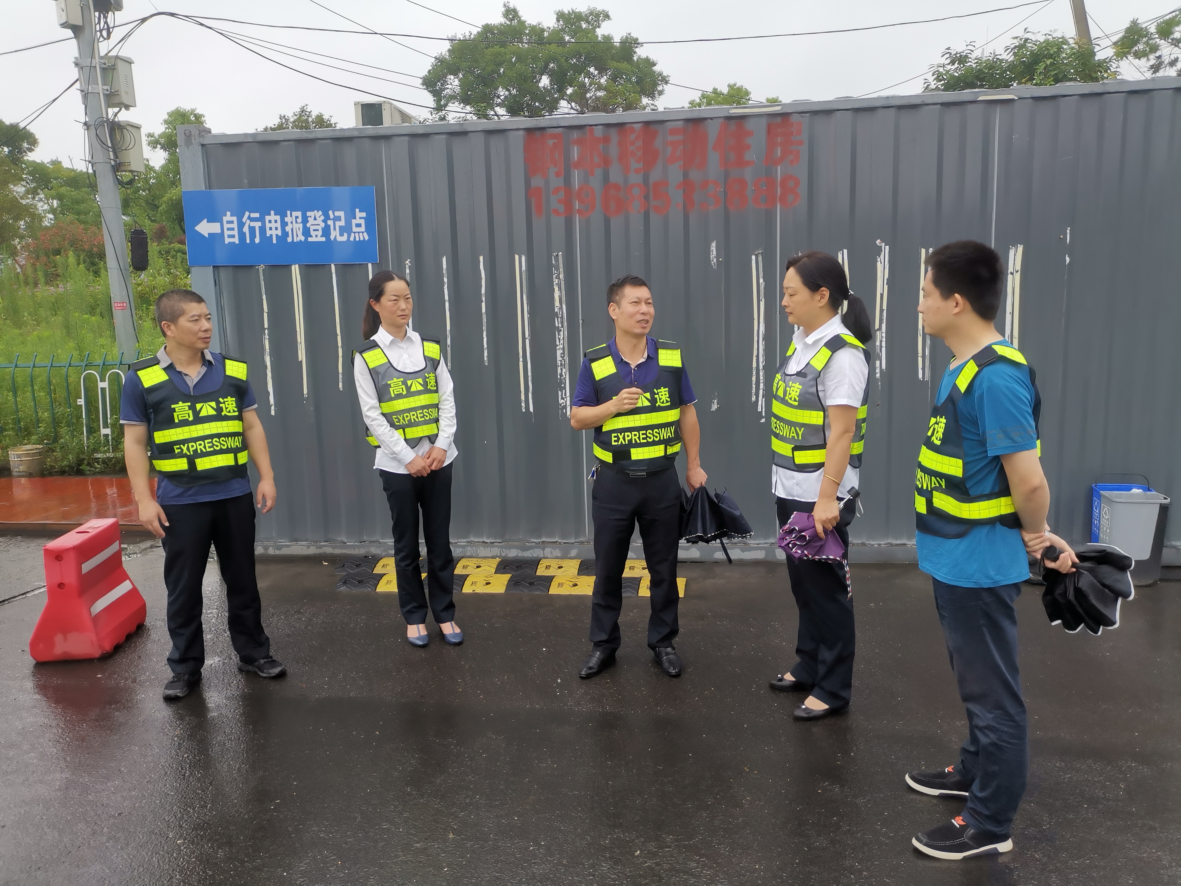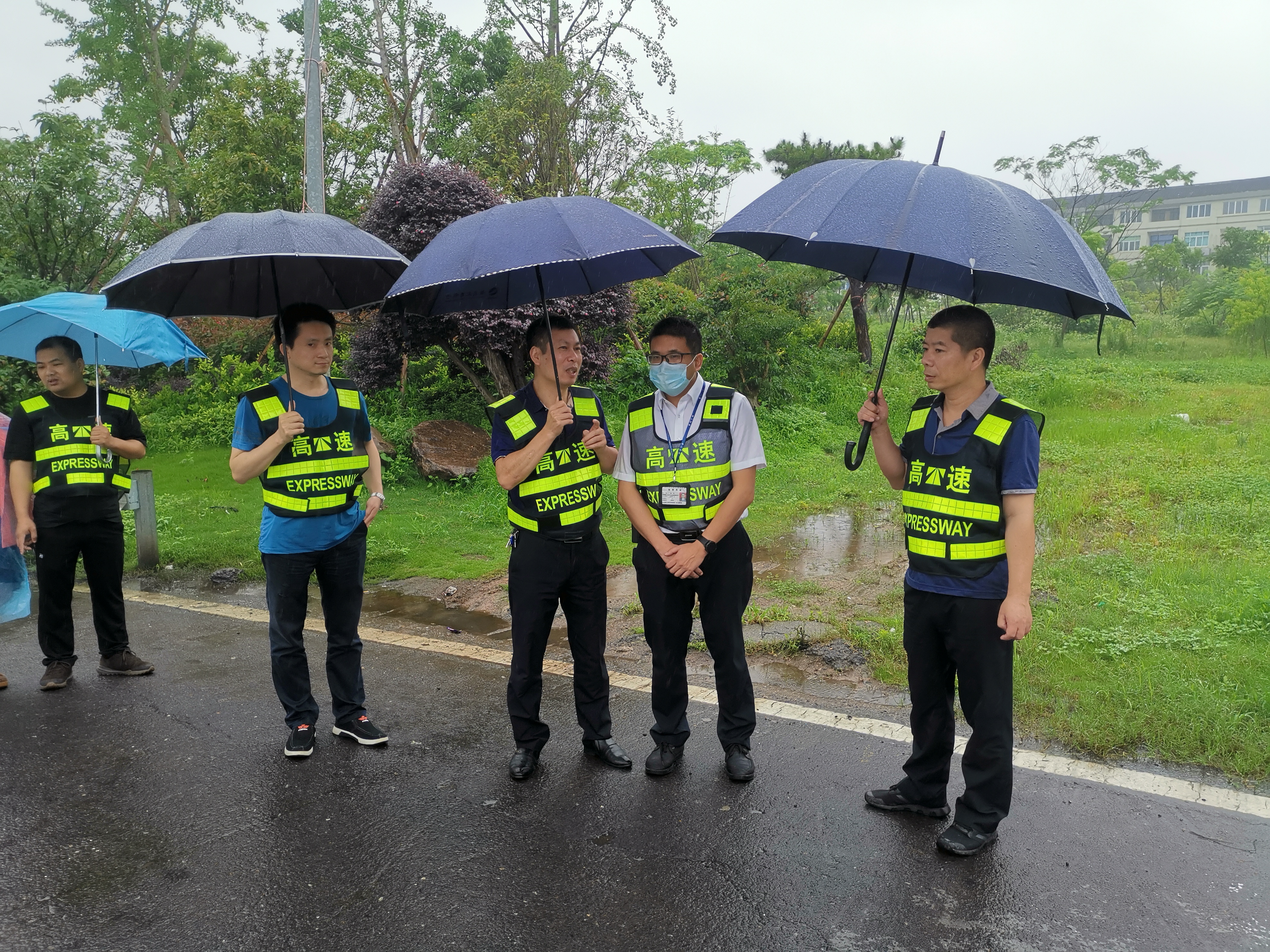 集團(tuán)總工程師江輝到一線開展汛期安全隱患及 收費站入口管控檢查 6月8日上午,集團(tuán)總工程師江輝帶領(lǐng)工程養(yǎng)護(hù)部、征費管理部、安保部、養(yǎng)護(hù)公司等人員,冒雨開展汛期橋隧邊坡安全隱患排查及收費站入口管控檢查。
