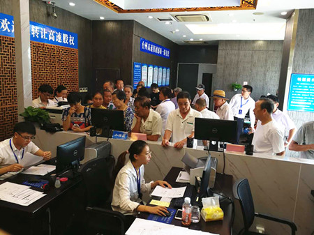 9月11日早上8點未到,溫嶺、仙居、椒江等其它收購點已有不少股東排隊等候辦理股權轉讓手續(xù)。自9月8日臺州高速股權收購工作正式啟動以來,各個收購點現(xiàn)場“生意”火爆。工作人員主動提前上班,接待各位股東。 “這么早就在上班了,辛苦了?!庇械墓蓶|會親切地跟工作人員打招呼。