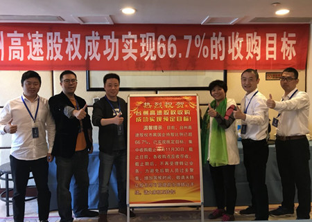 股權(quán)收購工作自啟動以來,市委、市政府高度重視,市直各部門和各縣(市、區(qū))政府大力支持,措施得力,領(lǐng)導(dǎo)小組辦公室精準(zhǔn)服務(wù),認(rèn)真落實(shí)各項(xiàng)舉措,臺州高速集團(tuán)精心籌備,宣傳深入有效。