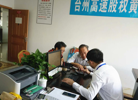 圖為黃巖收購點工作人員服務(wù)股東現(xiàn)場 “那時候沒錢,可咱領(lǐng)導(dǎo)干部要帶頭,這錢還是向自家兄弟借的。”這是原市府領(lǐng)導(dǎo)夫人的原話。 “科室里沒人認領(lǐng),我想著咱也為臺州建設(shè)作點貢獻,就當捐款吧!沒想到后來真的有分紅,現(xiàn)在還有這么高的收購價,值了!”這是大多數(shù)股東的原話。