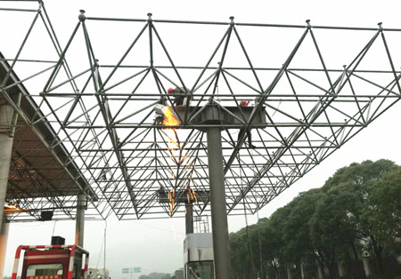 溫嶺西收費站位于大溪鎮(zhèn)大石一級公路起點處,改造前,收費站為四進(jìn)六出十個車道。因臺州市區(qū)僅有一條南北縱向高速,玉環(huán)市、溫嶺市的車輛都要從溫嶺西這個收費站進(jìn)出高速,造成該站每日出入車流量巨大。為了有效緩解出口車輛排隊等問題,集團提前謀劃,啟動溫嶺西收費車道拓寬工程。 而這項工程中最重要的就是鋼結(jié)構(gòu)網(wǎng)架吊裝,鋼結(jié)構(gòu)網(wǎng)架長18米,寬9.4米,重達(dá)15噸。為了減少集團通行費的損失和保證吊裝過程的安全,工程養(yǎng)護部與施工單位合力研究,專門編制了專項吊裝方案,動用了兩臺25噸吊機。