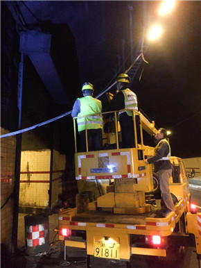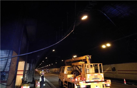 “南廣場有大貨車報警,據(jù)說發(fā)生事故……”4月17日凌晨3時55分,大溪嶺隧道中控室接到了臺州監(jiān)控中心緊急來電,執(zhí)勤隊立即驅(qū)車趕赴現(xiàn)場查勘。 巡邏車到達南廣場后,執(zhí)勤隊員發(fā)現(xiàn)溫向隧道進洞1公里處,隧道頂部的攝像頭被撞損,造成電纜橋架移位,電纜下垂橫跨車道,存在嚴重安全隱患。事發(fā)突然,執(zhí)勤隊員立刻做好安全預警措施,同時聯(lián)絡(luò)集團工程養(yǎng)護部機電維養(yǎng)中心,請求支援開展緊急搶修。