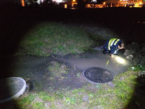 堅持不懈找水閘 不畏困難挽損失 12月17日晚,工程養(yǎng)護部機電設備維養(yǎng)中心值班隊員頂著寒風,通過細致耐心摸尋,成功找到水管總閘并將其關閉,不僅為公司節(jié)約幾百噸水資源,還為后續(xù)的搶修工作創(chuàng)造了有利條件。 當晚19點左右,正在參加周一學習夜的中心隊員接到臺州南收費所電話,告知副站一根地下水管爆裂,附近積水較多。接到搶險指令后,隊員們火速趕往現(xiàn)場查看,發(fā)現(xiàn)漏點位于外廣場綠化施工區(qū)域,周邊堆滿了泥土,底下不停地涌出白花花的水,并向草坪兩邊流淌,形成了多個水坑。 “必須先找到水管總閘將其關閉,否則后續(xù)搶修工作沒法開展?!标犻L陳華棟一邊說一邊解衣?lián)Q鞋,借著隊友微弱的手機燈光,打開了周圍一個個標有“水”字窨井蓋,可一連打開三個都未發(fā)現(xiàn)有水閘時,有人勸他晚上光線不好先行暫停,等明天天亮后再尋找。