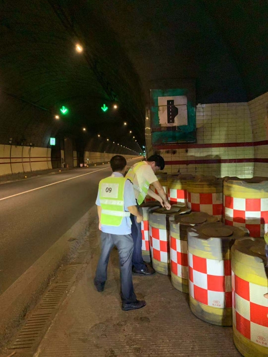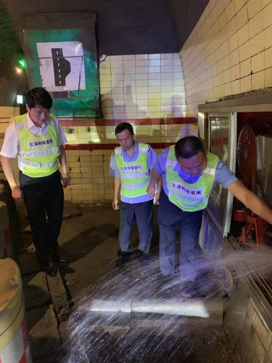 圖為檢查隧道內(nèi)消防設(shè)備
