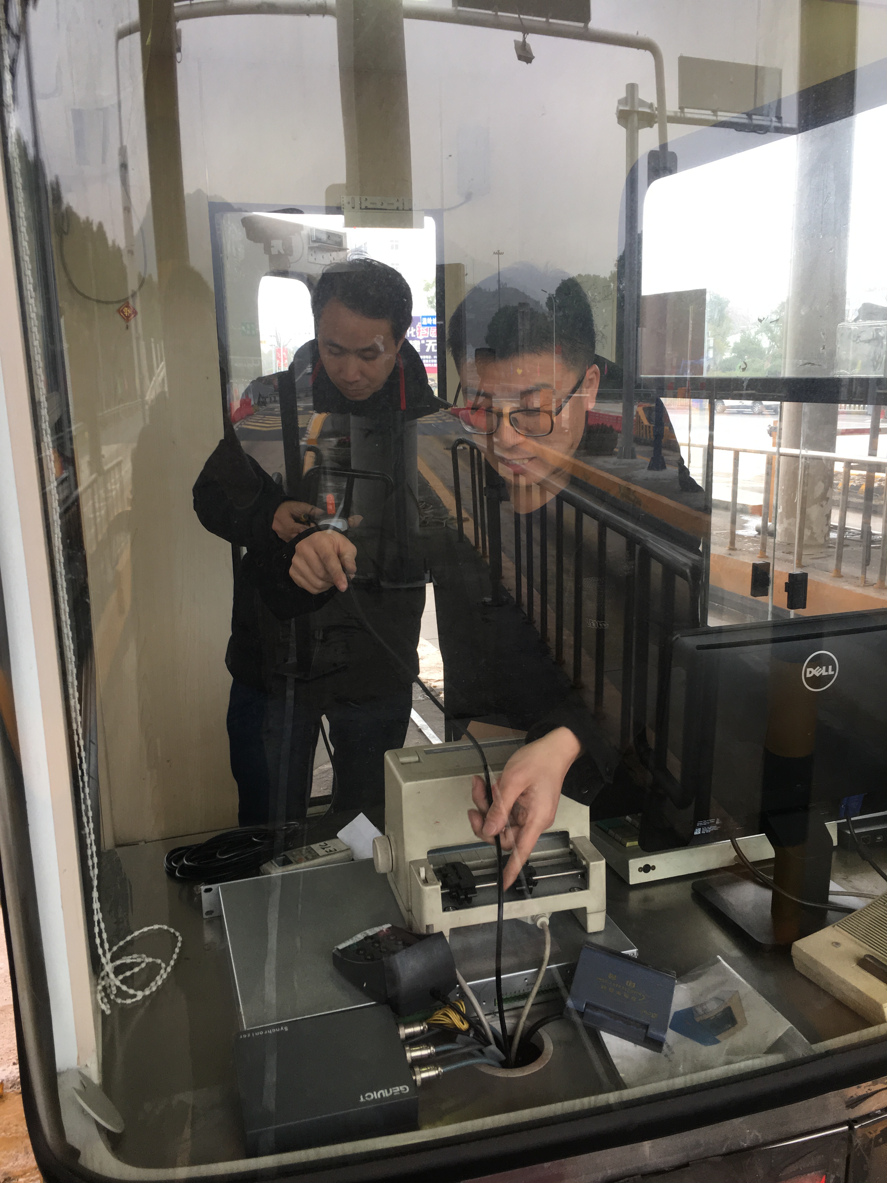 圖為工作人員在安裝手持OBU讀寫(xiě)器