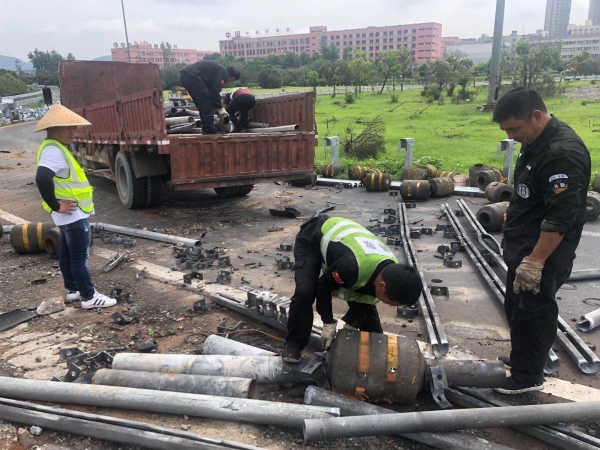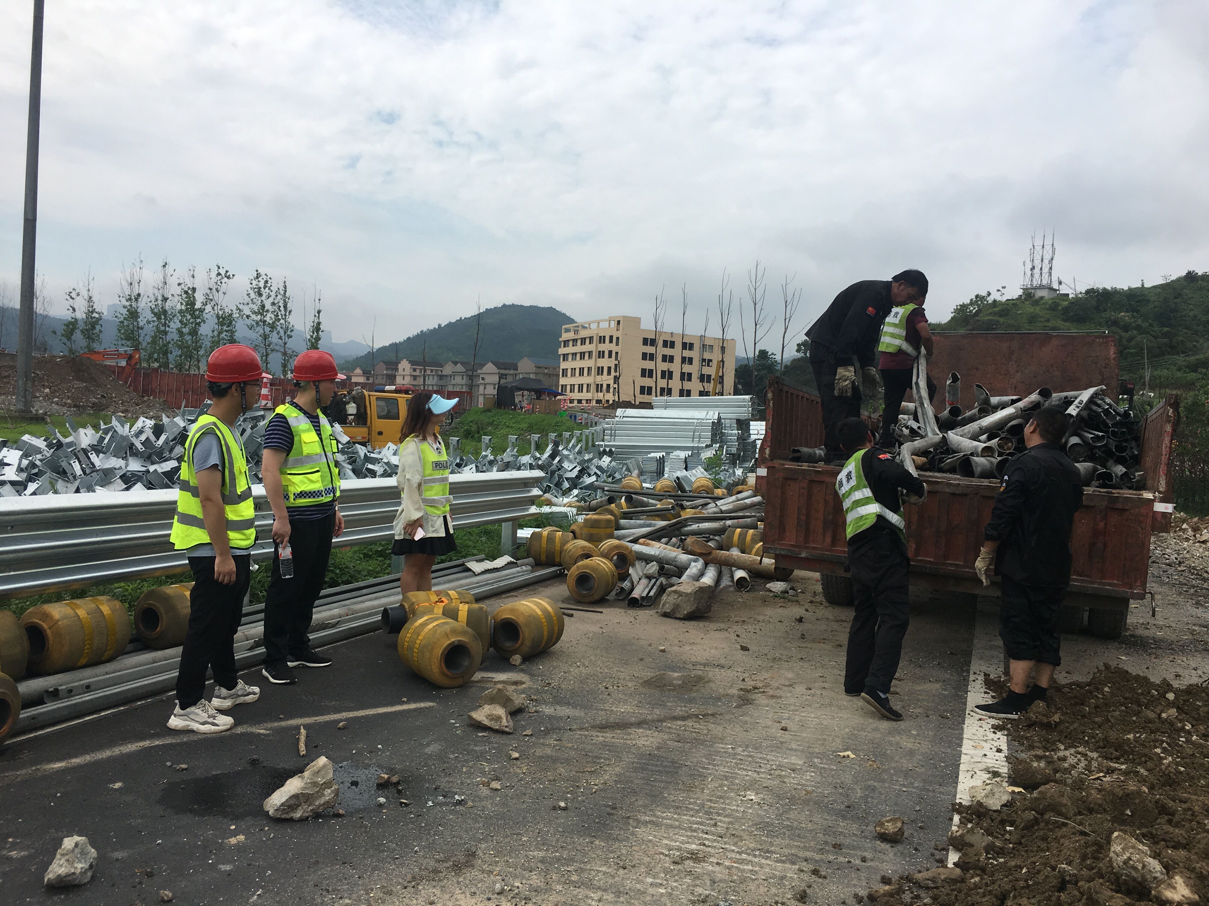 公司多部門聯(lián)合處置廢舊物資 7月27日,為協(xié)助工程部開展6.13浙江溫嶺槽罐車爆炸事故受損路段維修,盡早恢復(fù)通行。資產(chǎn)管理部在本月第二次聯(lián)合工程部、計財部、監(jiān)察室對公司路損防撞護欄板及立柱等廢舊物資進行處置。