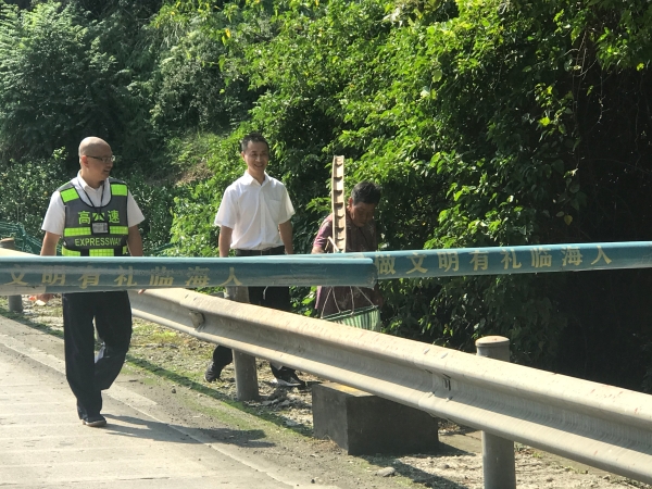 國慶期,臨海南收費(fèi)站口年過花甲的附近村民執(zhí)意要步行上高速,當(dāng)班工作人員及時勸阻,一路陪同,保障了老人家的人身安全,也維護(hù)了高速公路的正常秩序。