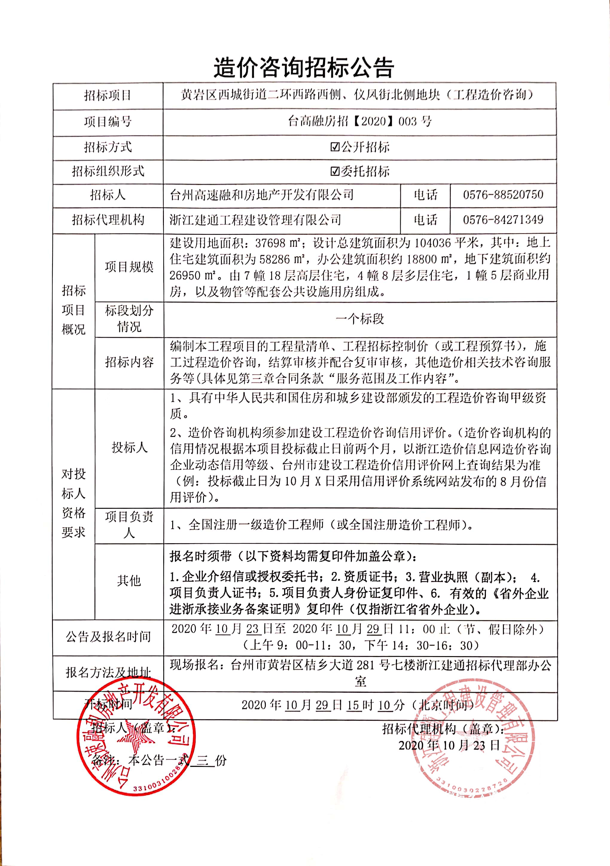 黃巖區(qū)西城街道二環(huán)西路西側(cè)、儀鳳街北側(cè)地塊(工程造價(jià)咨詢(xún))招標(biāo)公告