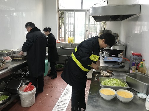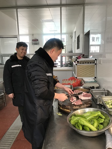 臨近春節(jié)又正值春運(yùn)期間,一時(shí)也找不到人員替代。為了保證員工正常用餐,中午,楊瑩瑩決定親自下廚為員工做飯,冰冷的水里直接洗菜,掄起廚刀剁肉切菜,卷起袖子熱鍋炒菜,儼然成為合格的大廚。副所長(zhǎng)周超、杜佳自動(dòng)加入司廚行列,其他行政人員在一旁配合摘菜、剝蒜等等,正在休息的班組其他人員見狀也紛紛前來(lái)幫忙。這一刻,小小廚房其樂融融,那是家的味道。午餐過(guò)后,楊瑩瑩又開始考慮晚餐和明天的早餐,但是她不再發(fā)愁,因?yàn)樯砗筮€有無(wú)數(shù)個(gè)他們。