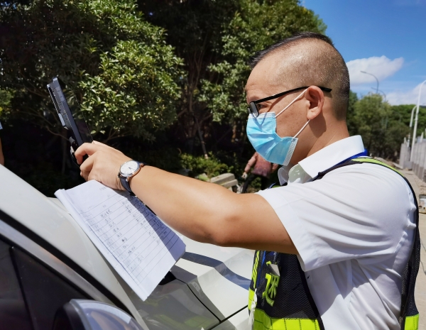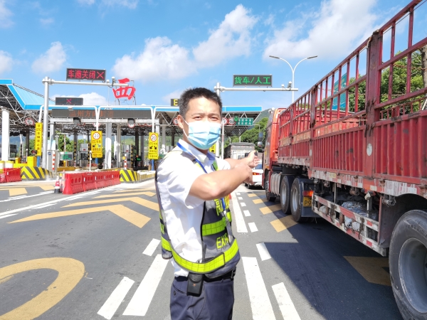 這是征費(fèi)四班班長(zhǎng)鄭星和駕駛員的對(duì)話,他手持iPad,不停地在屏幕上滑動(dòng)著、查詢著。天氣炎熱,大貨車開車時(shí)較為顛簸,3M膠軟化黏不牢,ETC設(shè)備容易脫落。ETC設(shè)備一旦掉落,則會(huì)提示“標(biāo)簽已失效”,就無法正常工作,不能實(shí)現(xiàn)不停車出入高速公路ETC車道,給來往司機(jī)和收費(fèi)人員增添了很多麻煩。為全力配合ETC服務(wù)需要,鄭星冒著酷暑高溫,不厭其煩地幫著司乘人員解決問題,一天下來工作服濕了又干,干了又濕,他就是臺(tái)州高速上的最美堅(jiān)守者。