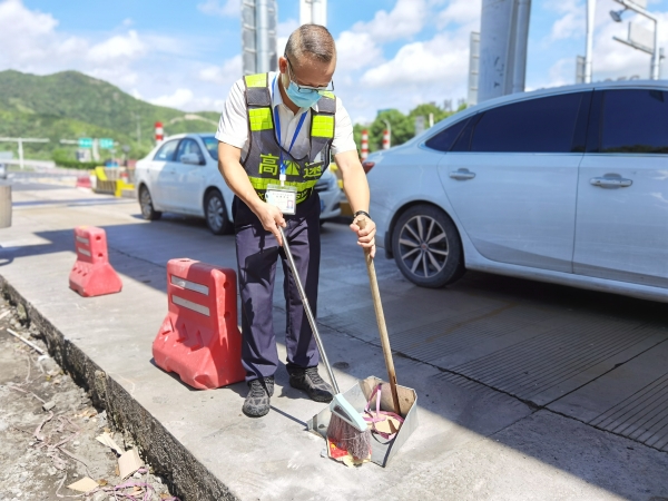 烈日灼燒著大地,高速兩邊的樹葉都被曬得打了卷,悶熱的空氣讓人喘不過氣來,在溫嶺西收費(fèi)站,不少司乘人員在過站時(shí),隨手將食品的塑料袋、煙頭、塑料瓶等垃圾丟棄在收費(fèi)站出口處,班長(zhǎng)陳軍見到隨時(shí)清掃路面,保持收費(fèi)區(qū)域衛(wèi)生干凈整潔。彎腰、清掃、起運(yùn),看似簡(jiǎn)單的一組動(dòng)作,陳軍每天要重復(fù)幾十次,衣服一天不知要被汗?jié)穸嗌俦椋?/span>但他堅(jiān)持以良好的形象展示臺(tái)州高速的精神風(fēng)貌。他就是臺(tái)州高速上的最美堅(jiān)守者。